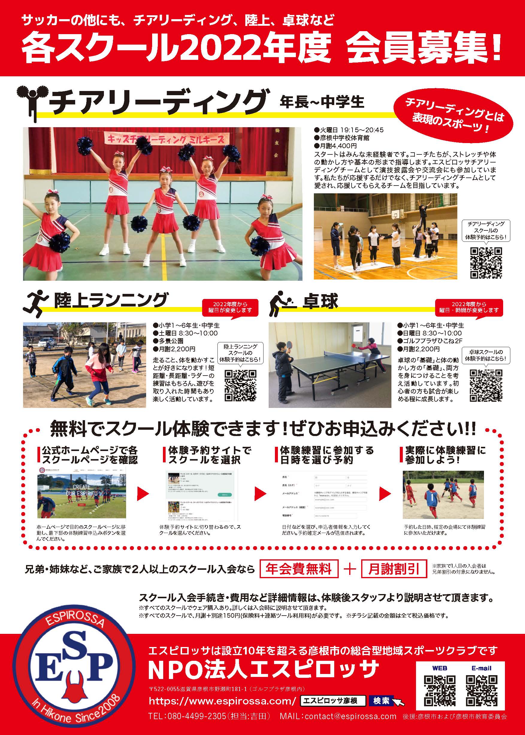 2022エスピロッサ チアリーディング・卓球・陸上ランニング スクール募集要項
